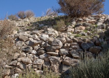 The ruins of many walls and residential buildings can be found on the hillsides and the meseta. On the northern hillside, there is a cemetery where fragments of handmade ceramics were found.
