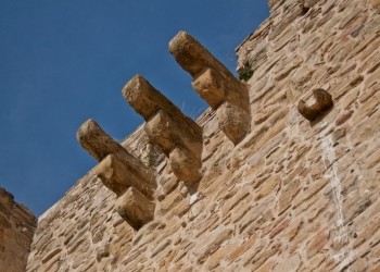 Lopera"s castle is a formidable structure characterized by its massive irregular masonry construction. It boasts an intriguing and distinctive pentagonal base, which adds to its unique charm. The castle"s defense is fortified by five towers, each with its own distinctive shape; some towers are cylindrical, while others take on a prismatic form. Remarkably, the castle features machicolated balconies, a defensive architectural feature designed to enhance the protection of its entrances and certain fortified towers.