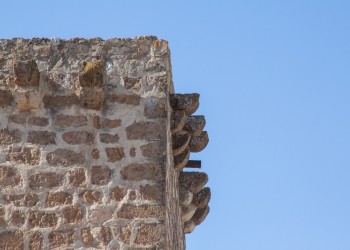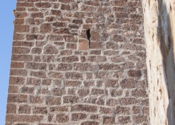 La Torre Mocha is less elegant than the Torre del Reloj. It is made of ashlar and stonework and its corners are strengthened with ashlar alternated as headers and stretchers. It has no battlement, hence its name.